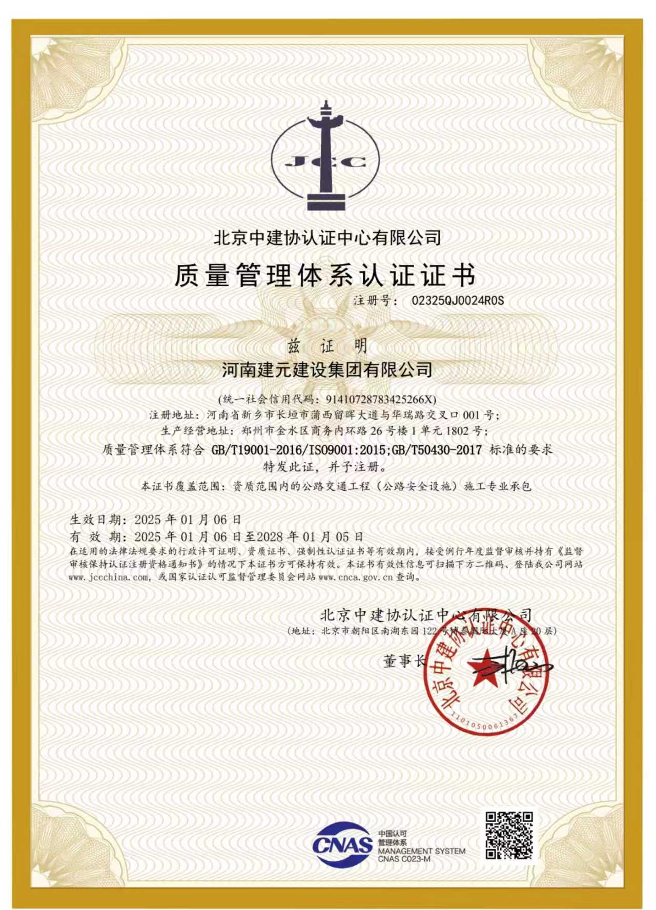 质量管理体系认证证书